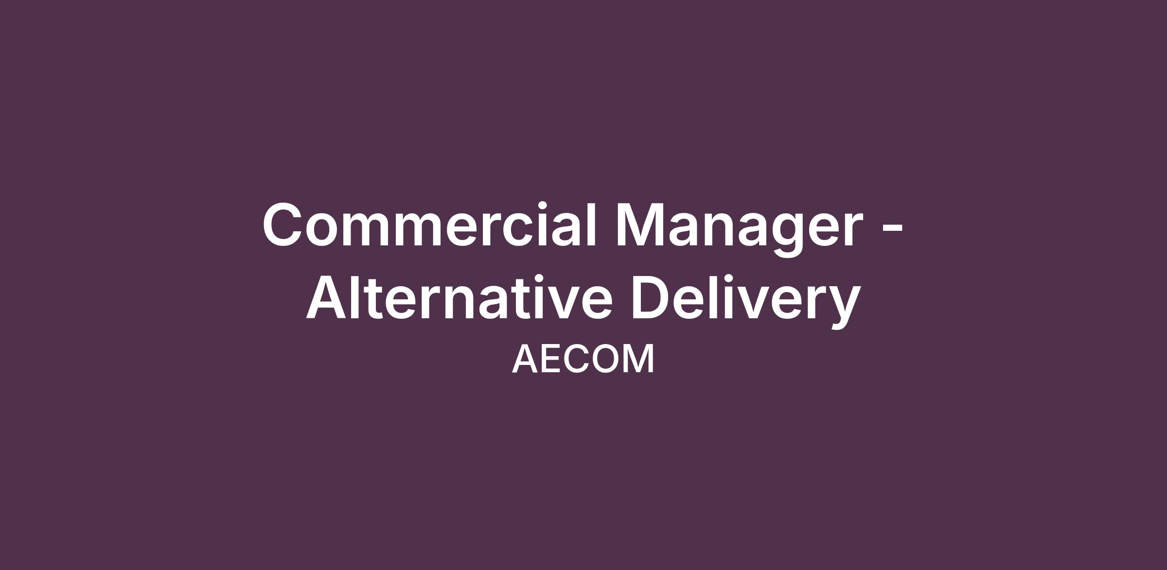 AECOM Burnaby is hiring a Commercial Manager to join our Alternative Delivery Group.