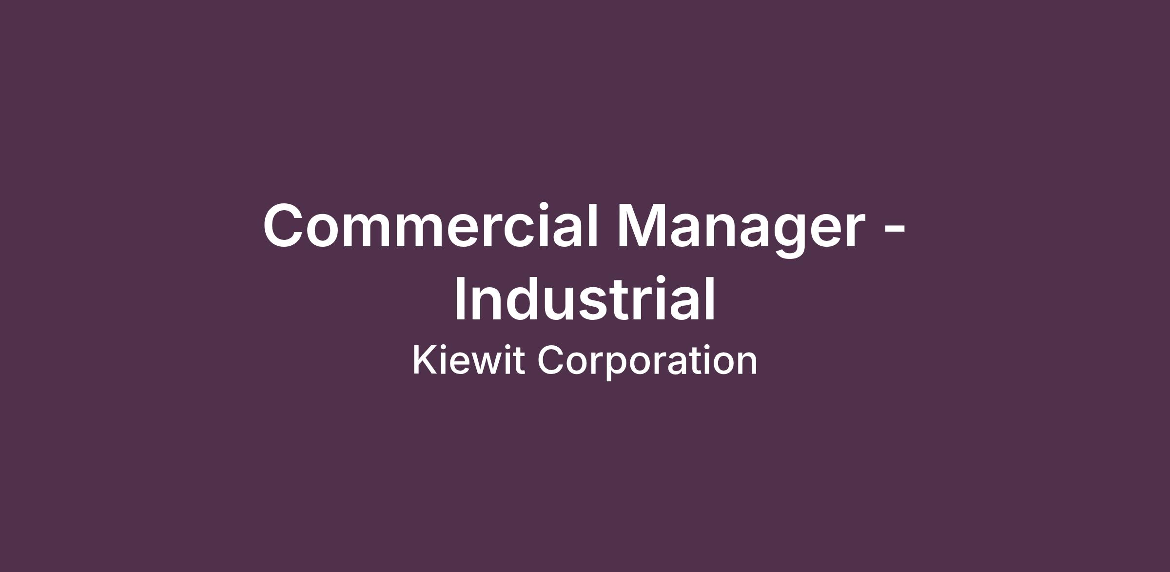 Although travel is not a major component of this role, the Commercial Manager must be willing to meet customers and partners and visit projects, as needed. If not based in Kiewit Industrial office, the Commercial Manager must visit those offices on a regular basis as agreed with supervisor. Total travel is expected to be up to 25%.