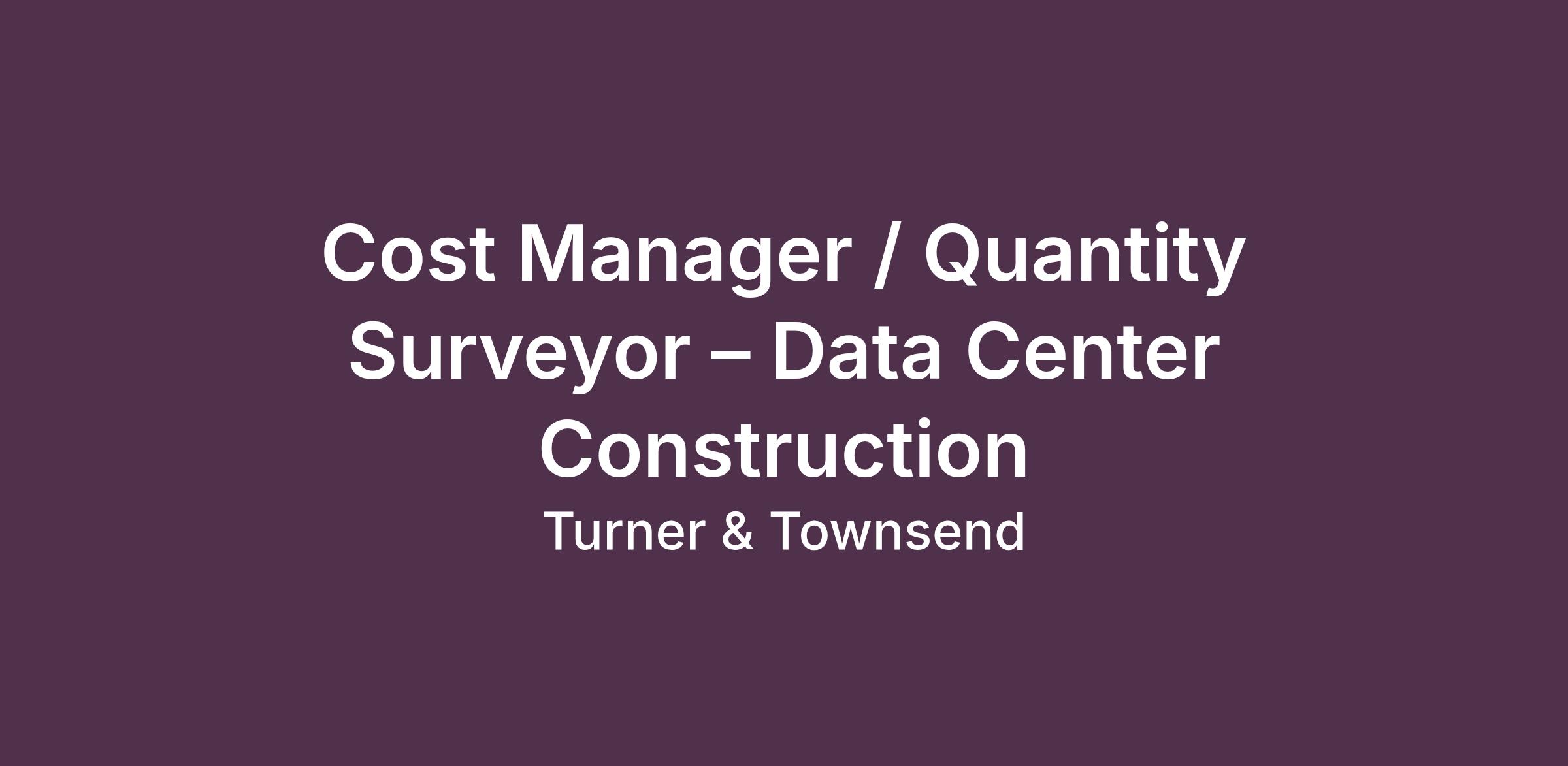 Turner & Townsend is seeking an experienced Cost Manager / Quantity Surveyor to serve as the day‑to‑day client interface and deliver a value‑added cost management service on a large‑scale, mission‑critical data center program. This role is pivotal in ensuring the project is delivered on time, within budget, and to the highest standards, with strong emphasis on governance, commercial rigor, and stakeholder engagement.