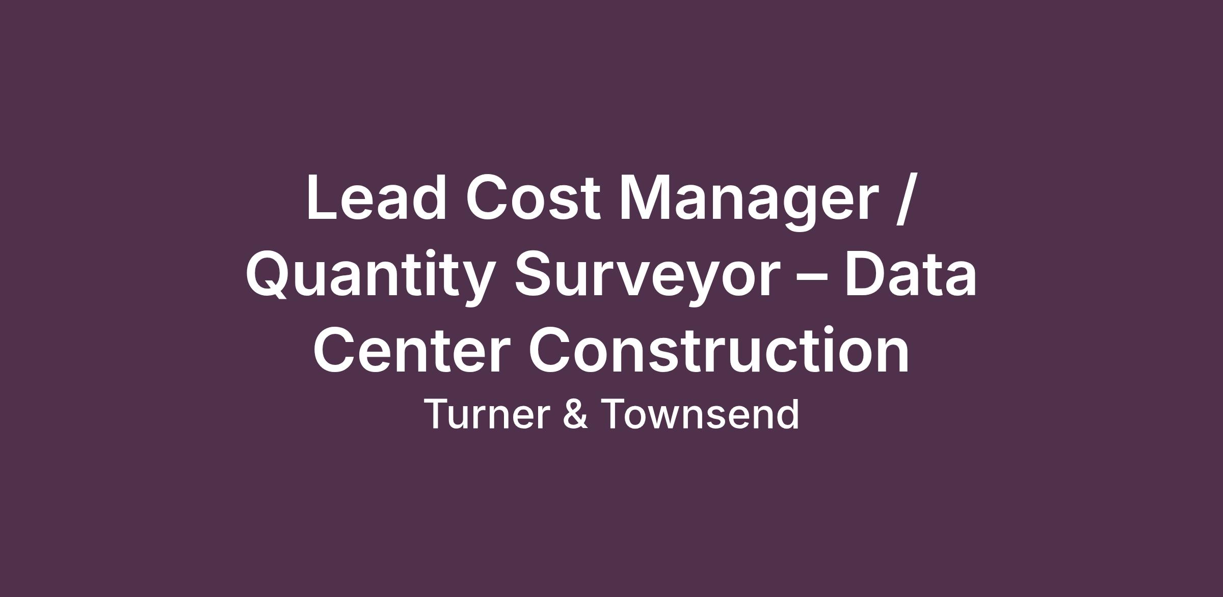 Turner & Townsend is seeking a Lead Cost Manager / Quantity Surveyor to support and guide commercial strategy, cost governance, and delivery oversight for a large multi‑phase data center development program. This $4B program, located approximately one hour from St. Louis, Missouri, includes a substantial new‑build campus requiring strong cost management capabilities, disciplined controls, and coordination across multiple phases and packages.