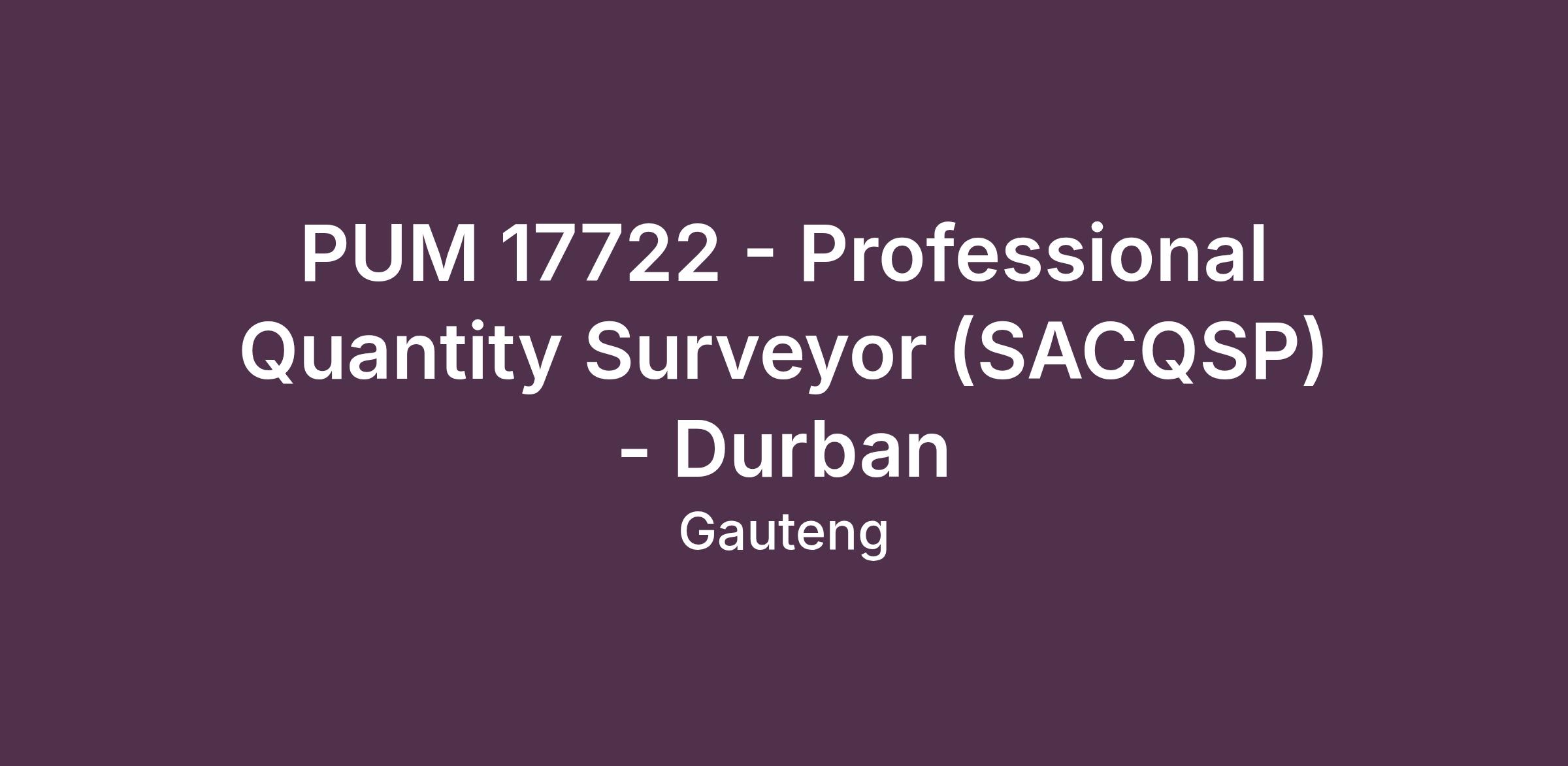 Ref: PUM 17722 - Professional Quantity Surveyor (SACQSP) – Durban