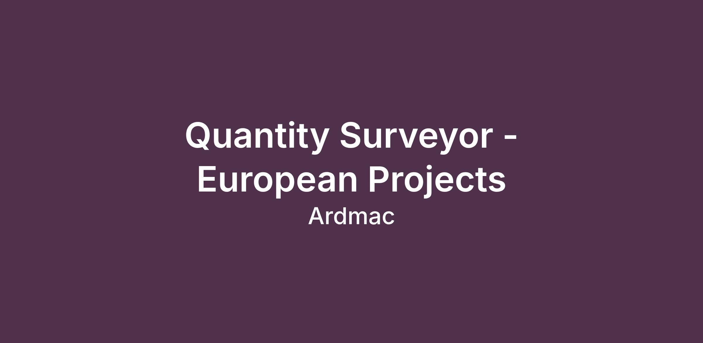 Ardmac are recruiting for a Quantity Surveyor to be based primarily in Dublin and to work on projects on the European continent. The successful candidate will travel once per month to visit project sites (3-5 day working trip).