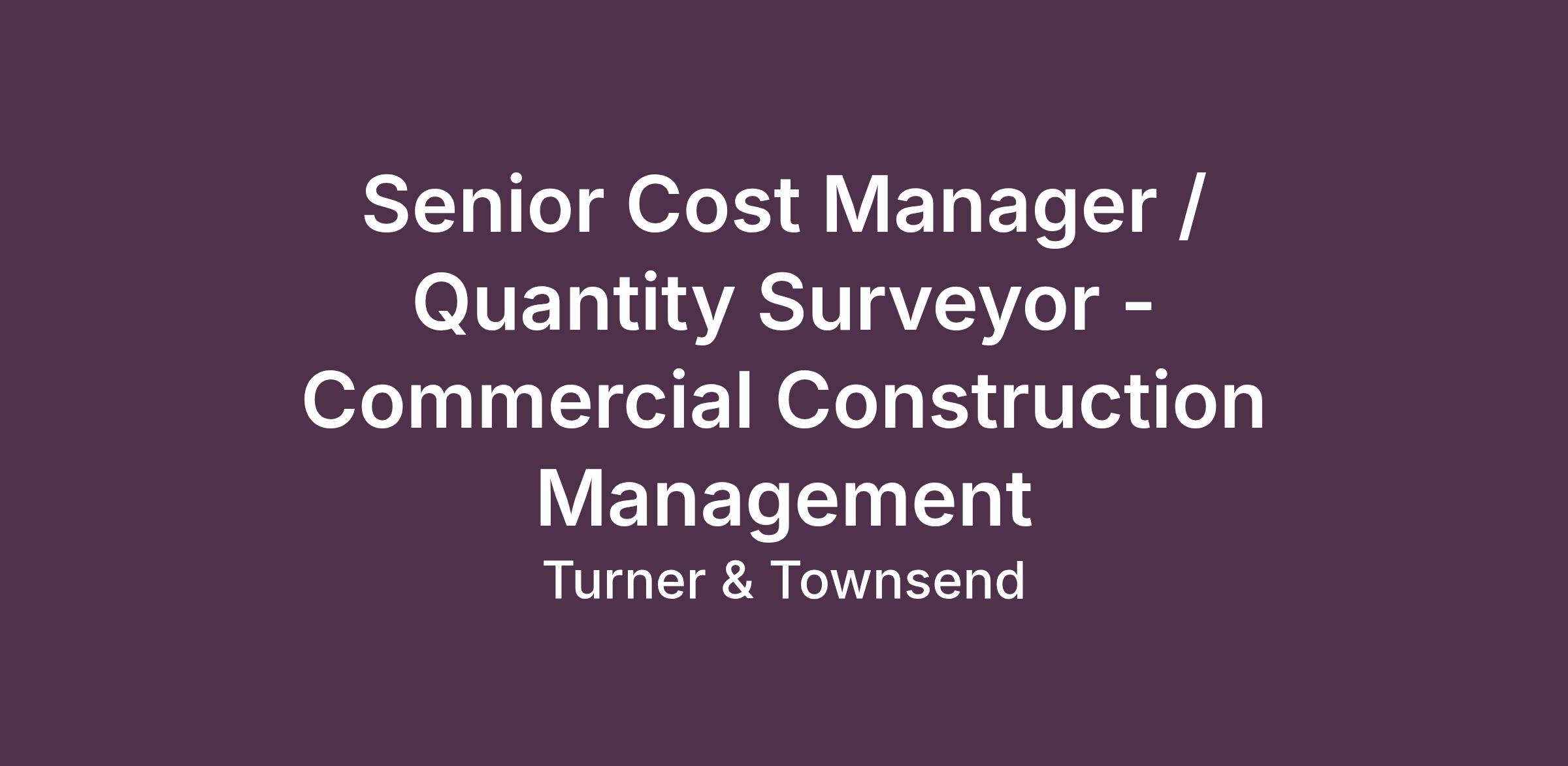 Turner & Townsend are looking for experienced Senior Cost Managers and/or Quantity Surveyors to act as the key, day to day client interface, ensuring that client objectives are met through the delivery of a value-added cost management service.