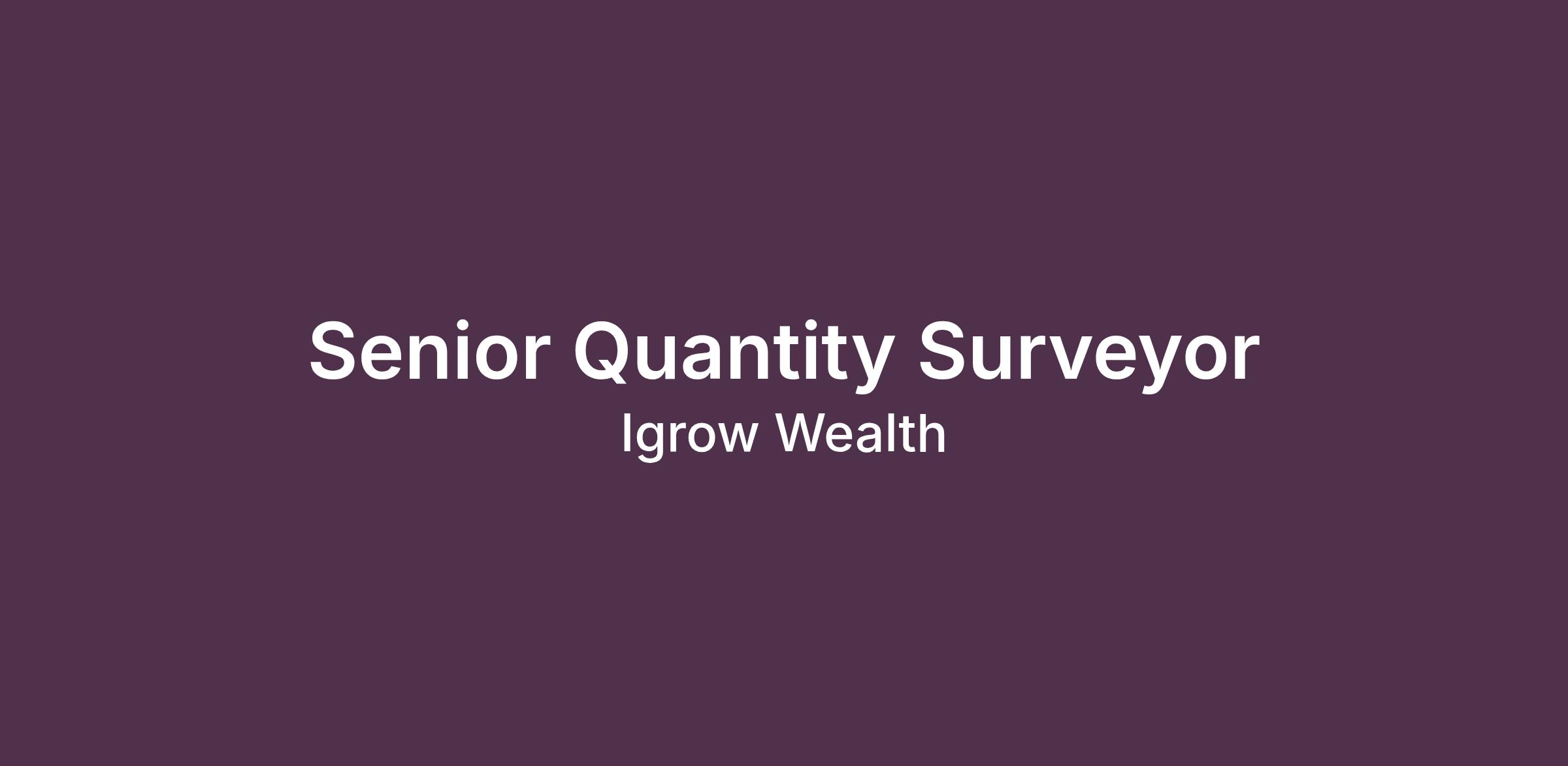 IGrow Wealth Investments Group of Companies, proudly positioned as South Africa’s #1 Investment company, is seeking Senior Quantity Surveyor to join our team in Durbanville, Cape Town.