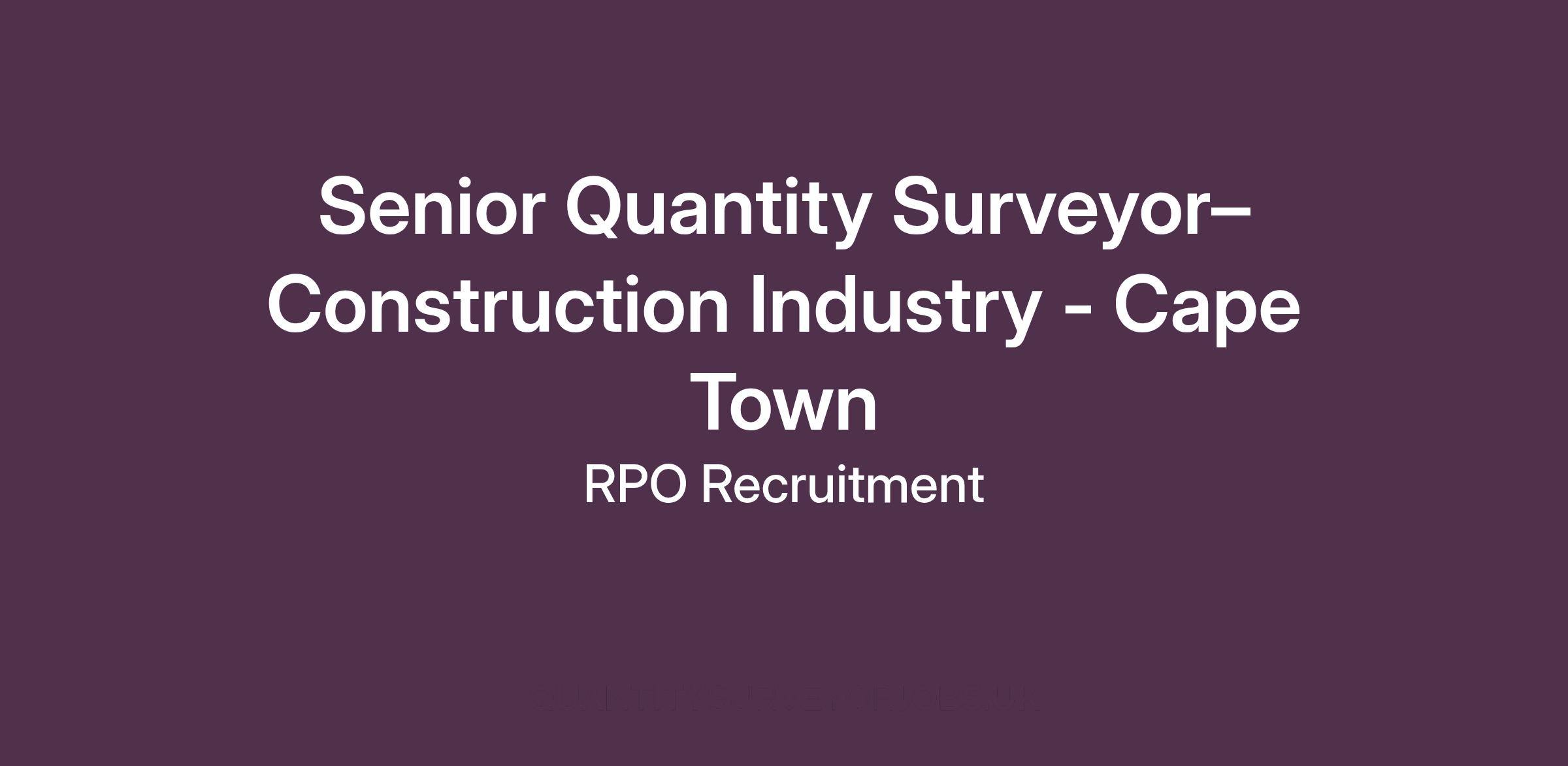 Our client, an established construction contractor specializing in residential development, is seeking an experienced Senior Quantity Surveyor to lead the cost management of significant housing and apartment projects launching in Cape Town