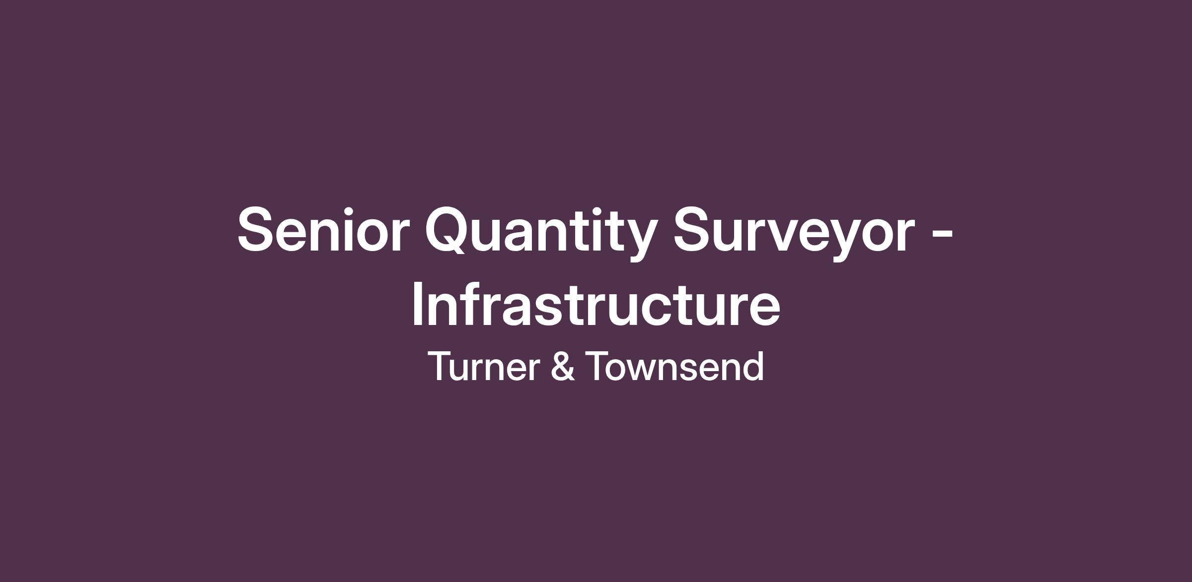 You will be a Senior Quantity Surveyor within our UK Infrastructure business working on a variety of client and Turner & Townsend projects and initiatives.
