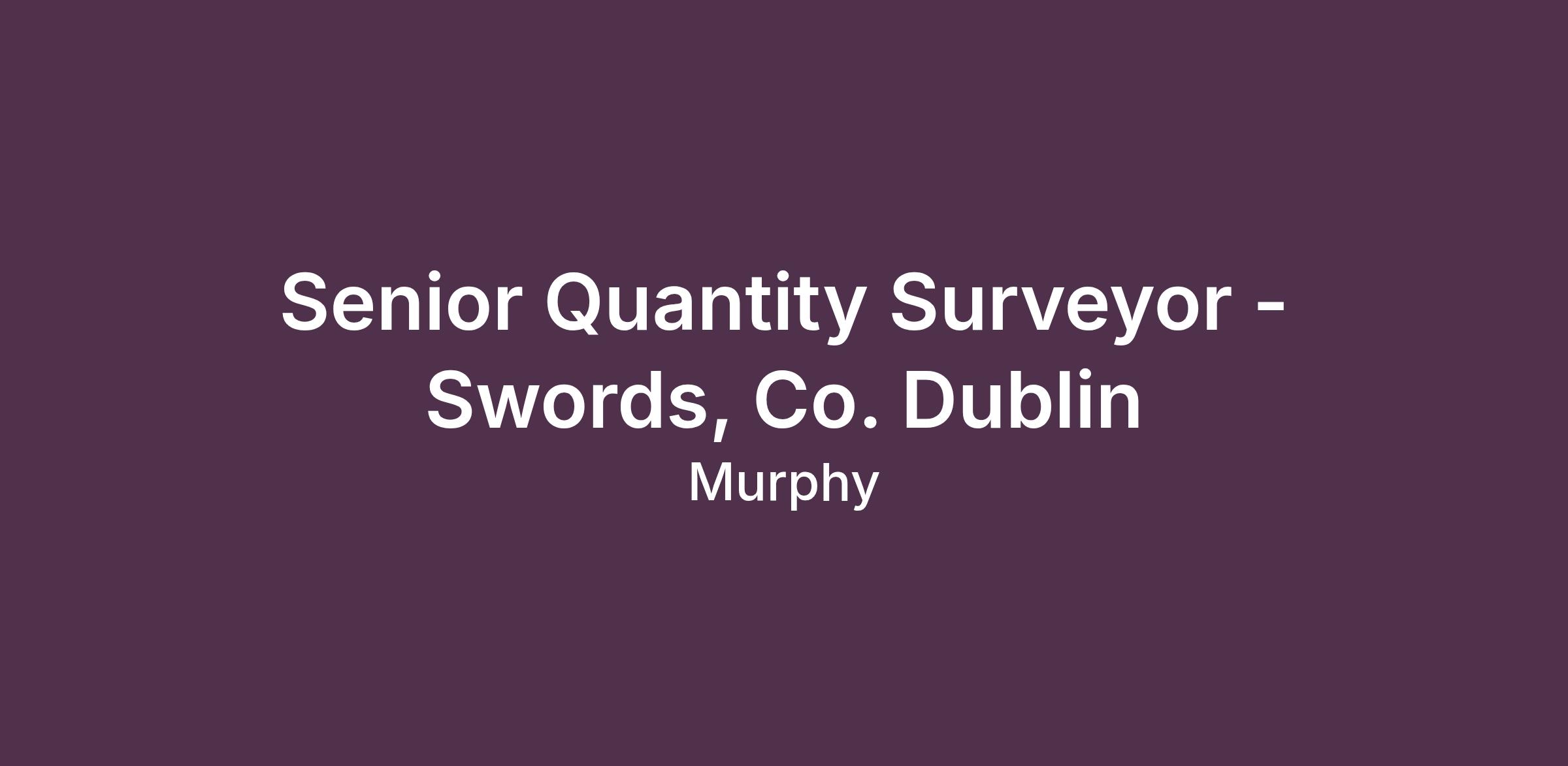Murphy is recruiting for a Senior Quantity Surveyor - Swords, Co. Dublin to work with our Transportation & Infrastructure team on a large project near Swords, Co. Dublin.
