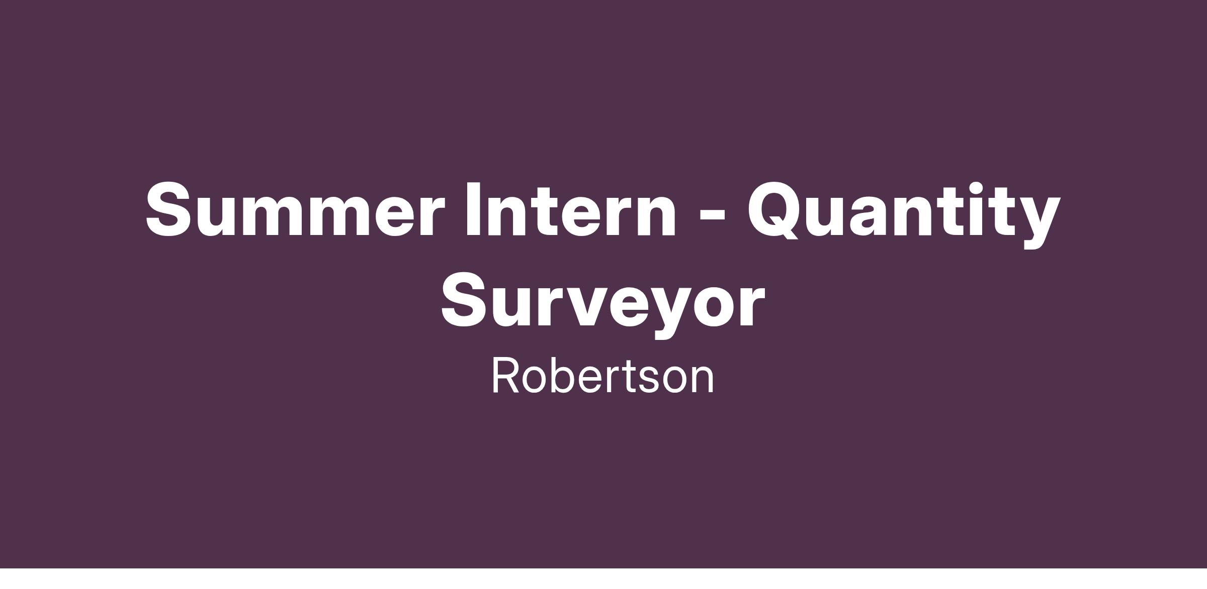 As an Summer Intern - Quantity Surveyor we understand this may be one of your first roles so we’re looking for someone who is working towards a BA Hons/BSc/MSc degree and is ambitious, collaborative and determined to make a positive impact – a great fit for Team Robertson.