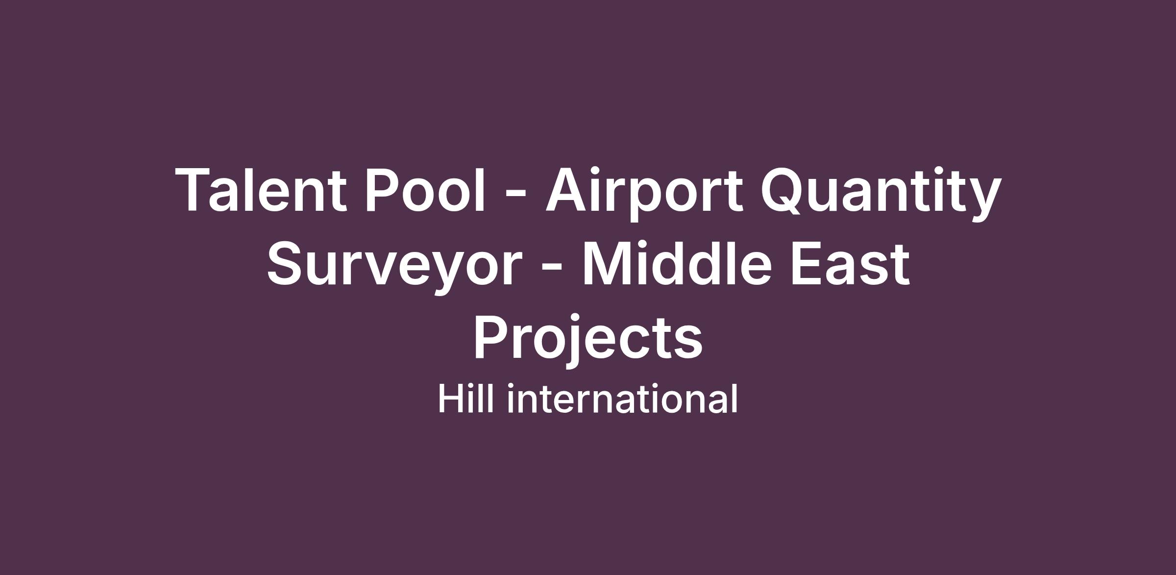 DescriptionTalent Pool – Airport Quantity Surveyor roles for Middle East projects focus on cost estimation, contract administration, and financial management of large-scale aviation developments. Candidates are responsible for preparing BOQs, managing variations, and ensuring effective cost control throughout the project lifecycle. This talent pool targets commercially astute professionals with experience in airport or major infrastructure projects across the region.